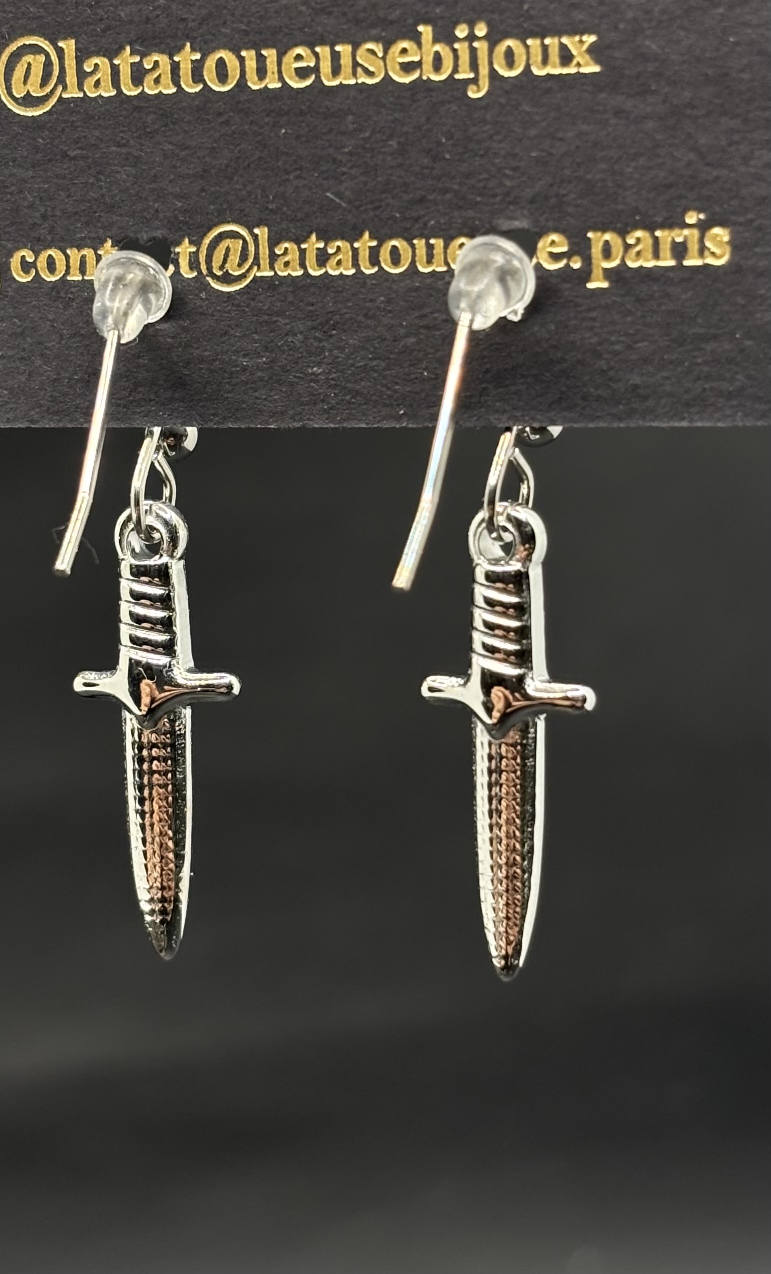 Boucles d’oreilles créoles dague en acier inoxydable.