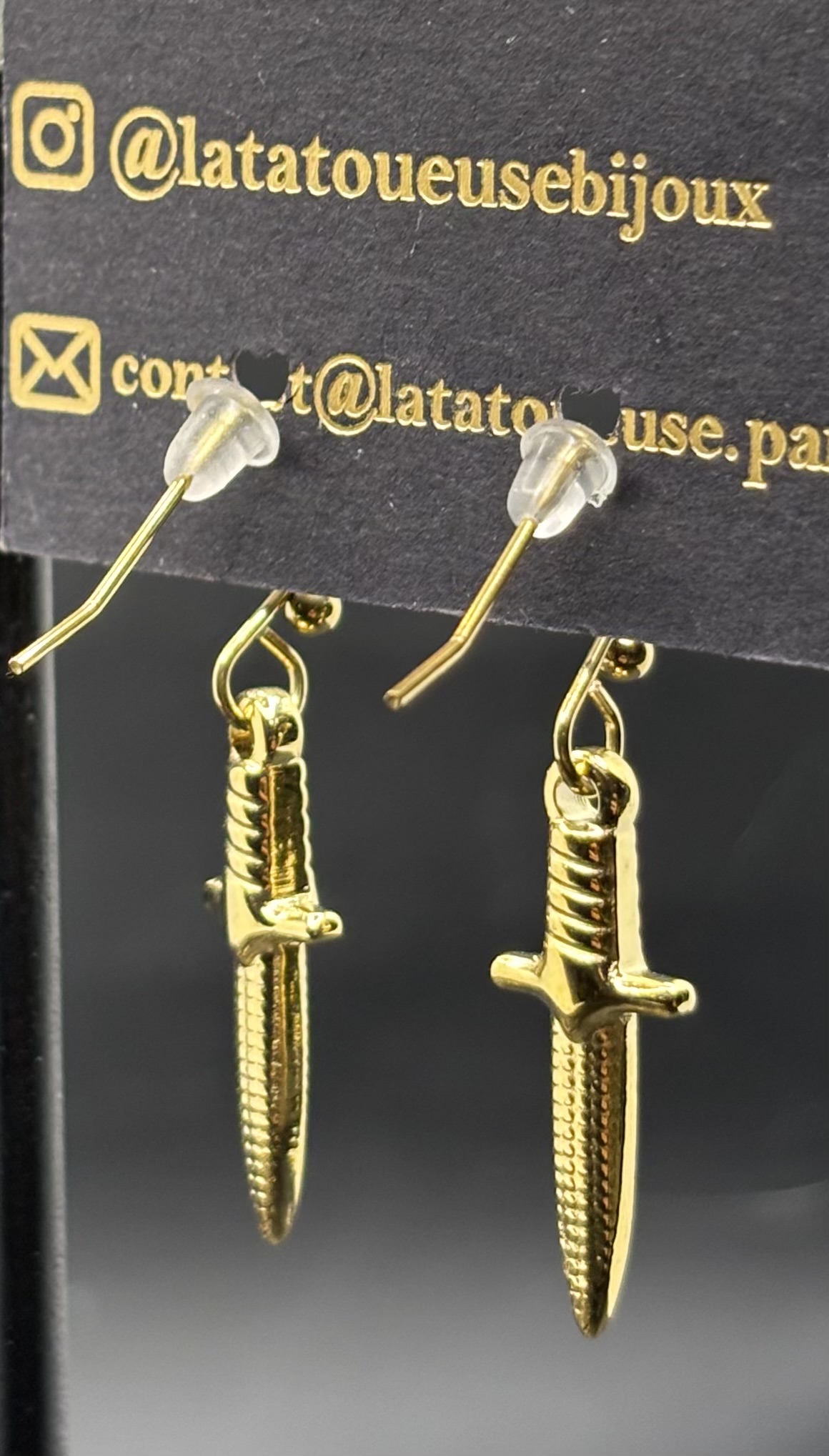 Boucles d’oreilles créoles avec pendentif dague .