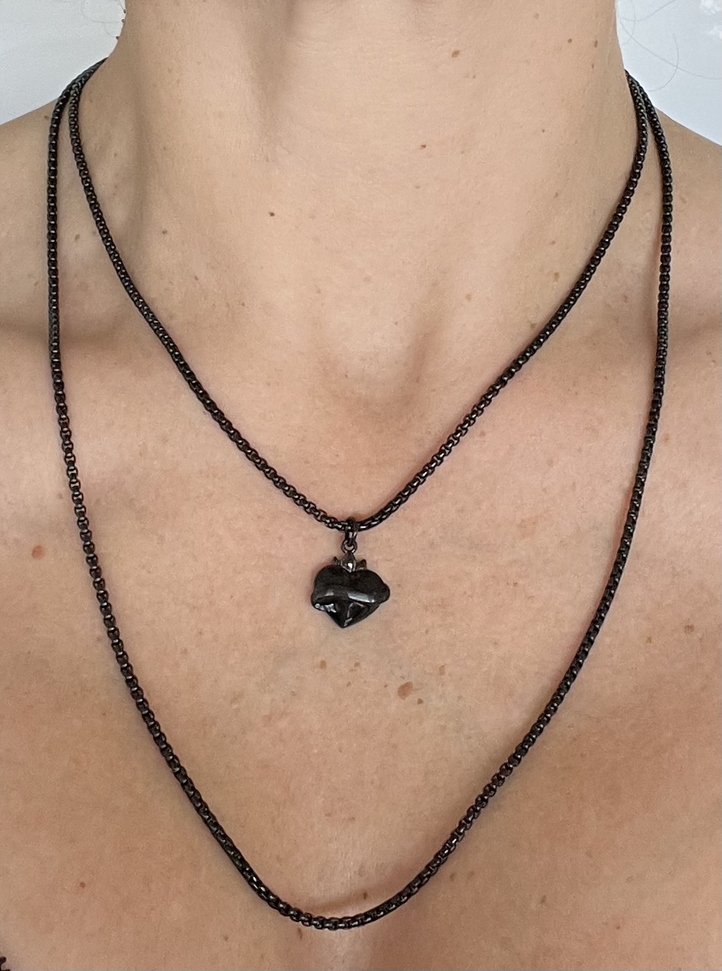 Collier chaîne et breloque cœur sacré noire, le tout en acier inoxydable.