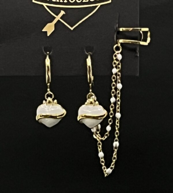CRÉOLES AVEC EARCUFF CHAINE ET CŒUR BLANC