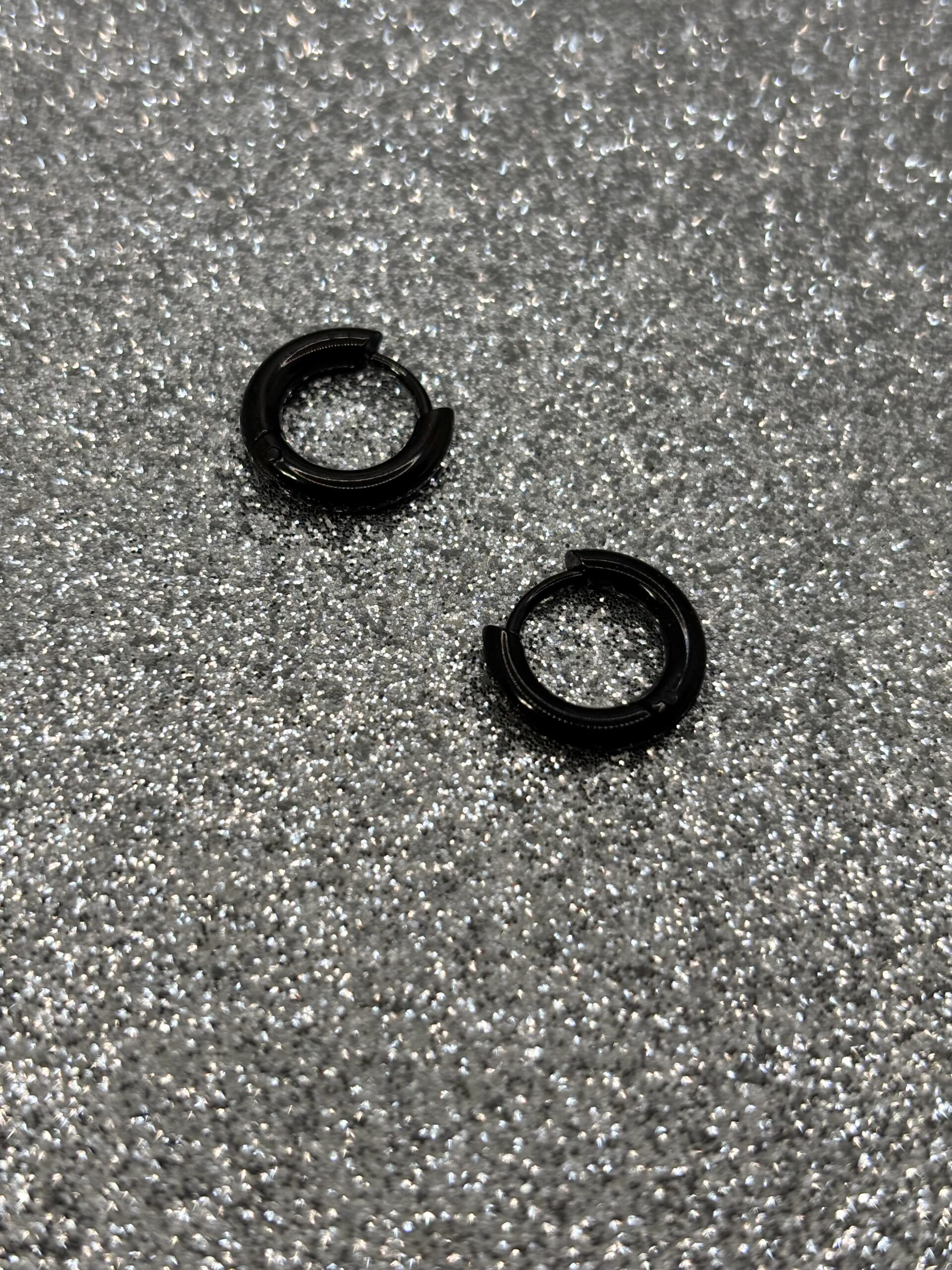 Boucles d’oreilles percées noir mat et noir brillant en acier inoxydable.